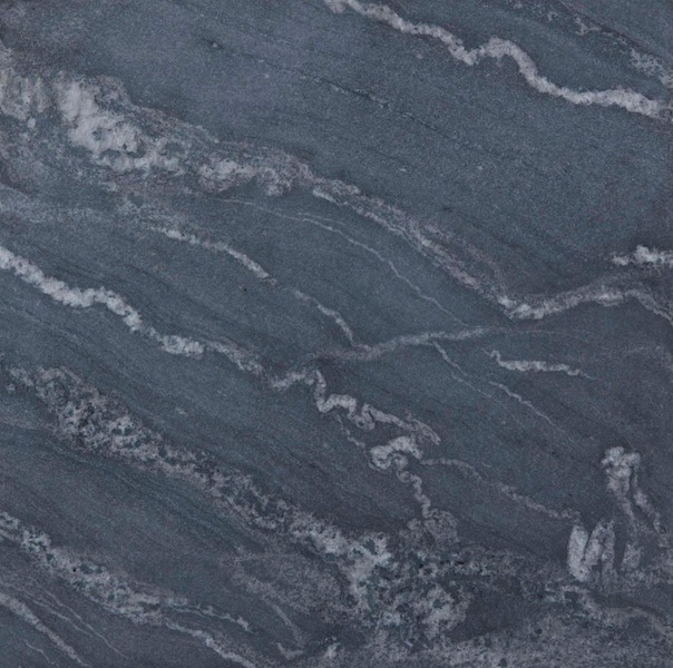 磨き上げた表面には、濃い灰色に白いスジが入る大理石のような流れ模様が見られる石です。