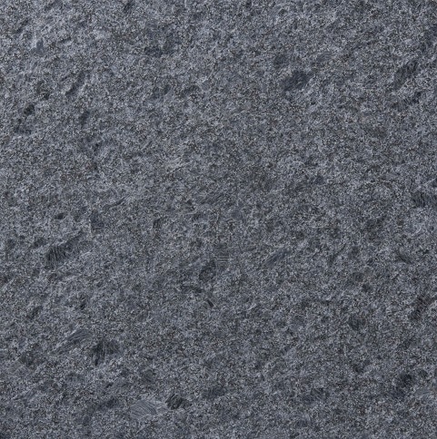 世界一のダイヤモンドが眠っていたインドのアーンドラプラデーシュ州で産出するグレー系の御影石です。比較的濃い目の色合いで、濃淡のあるグレーで柄が作り出されています。高温のバーナーで表面の結晶を飛ばし、ザラついた仕上げになっています。