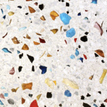 倉俣史郎さん考案の「スターピース」はカラーガラスのチップが入ったテラゾーです。