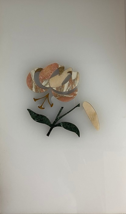 白色アクリルの中に天然石の花