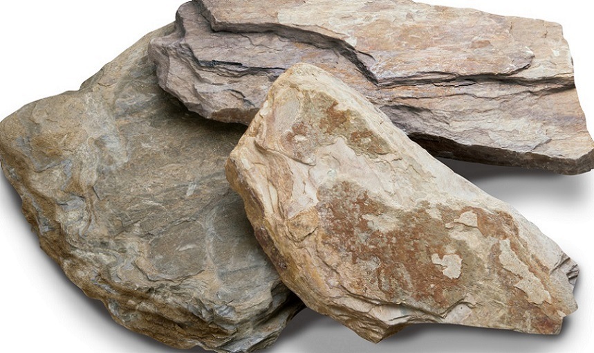 柔らかい色合いの粘板岩で、中国で採石されています。全体的に薄茶色のものが多く、中には灰色や青く見える部分もあります。不定形に割ってある優しいアースカラーの石材ですので、自然な雰囲気づくりに役立ちます。
