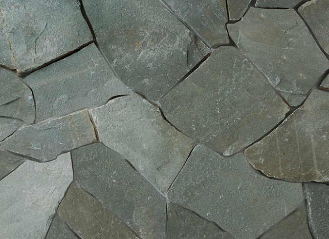 緑がかったいぶし銀のような雰囲気のある石英岩で、中国で採石されています。金属のような光沢がある落ち着いた趣のある色合いは、周囲の印象に貫録を持たせることができます。不規則に割ってある石なのでナチュラルな仕上がりになります。