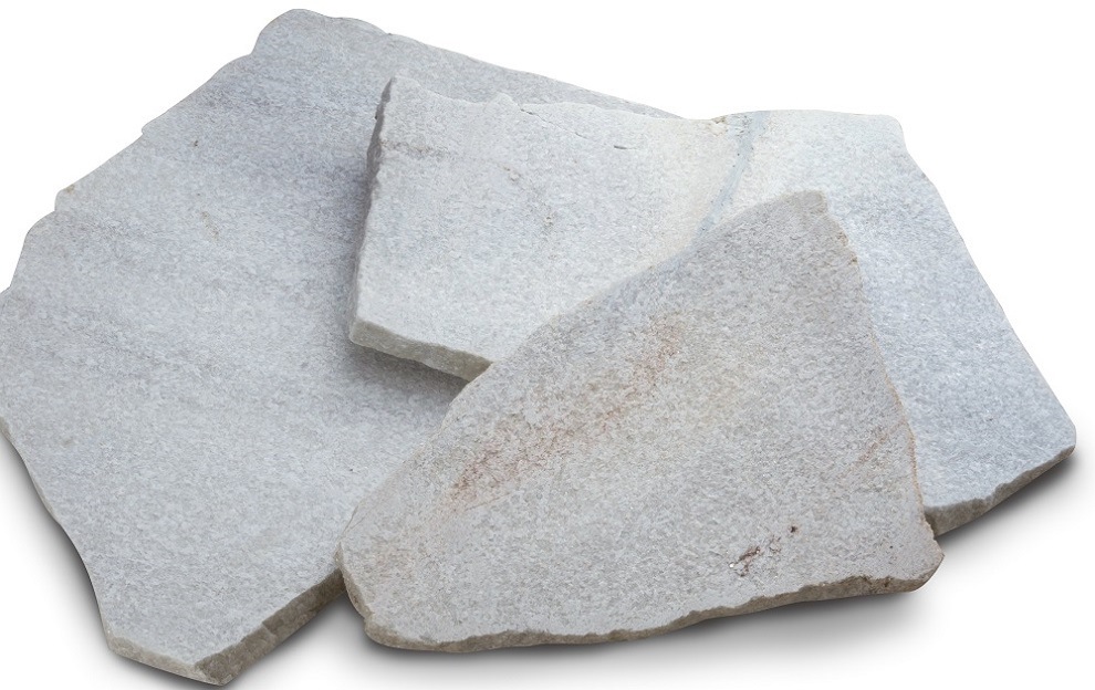 清楚な雰囲気を作り出せる、中国産の白い石英岩です。かすかに黄色味や青味があり、温もりのある白い石です。無造作に割られたような形状ですので、お好みで組み合わせてご使用ください。