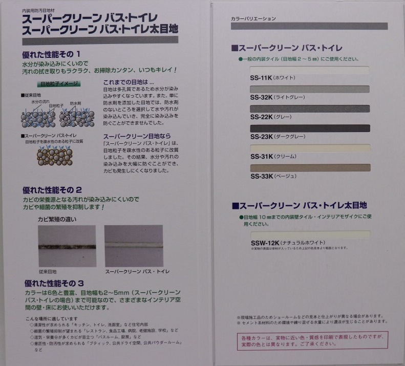 *バス・トイレなど水回りに適した既製調合目地材です。