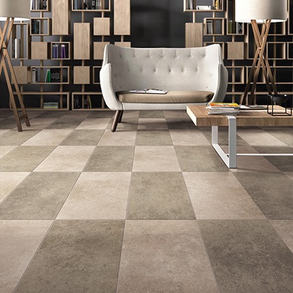 ●600×1200角、300×600角はタイルの性質上反りがあります。反りを目立たせないようにイモ張りまたはランダム張り(長辺の1/3以下のずらし張り)を推奨します。