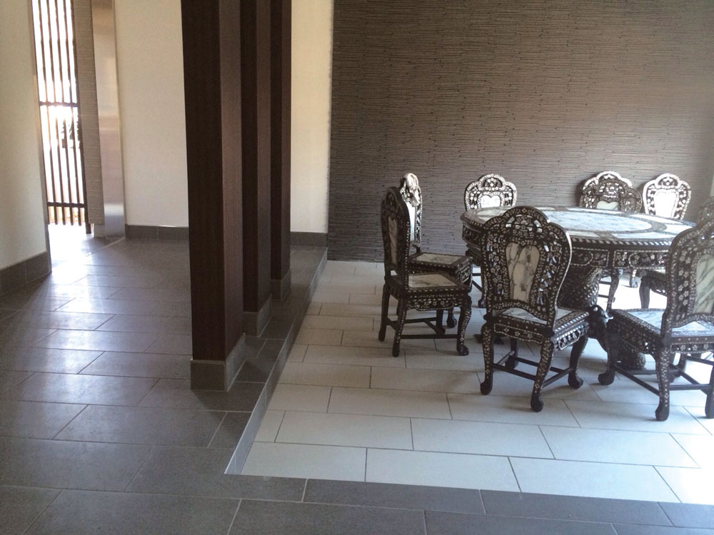 ●600×1200角、300×600角はタイルの性質上反りがあります。反りを目立たせないようにイモ張りまたはランダム張り(長辺の1/3以下のずらし張り)を推奨します。