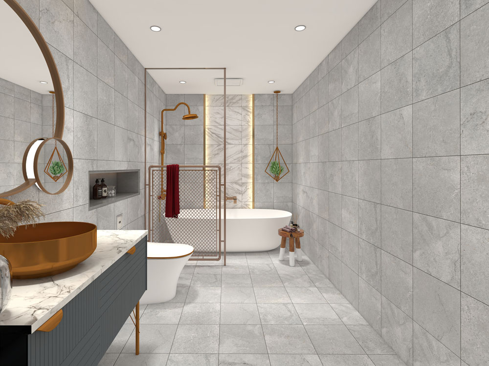 ●600×1200角、300×600角はタイルの性質上反りがあります。反りを目立たせないようにイモ張りまたはランダム張り(長辺の1/3以下のずらし張り)を推奨します。