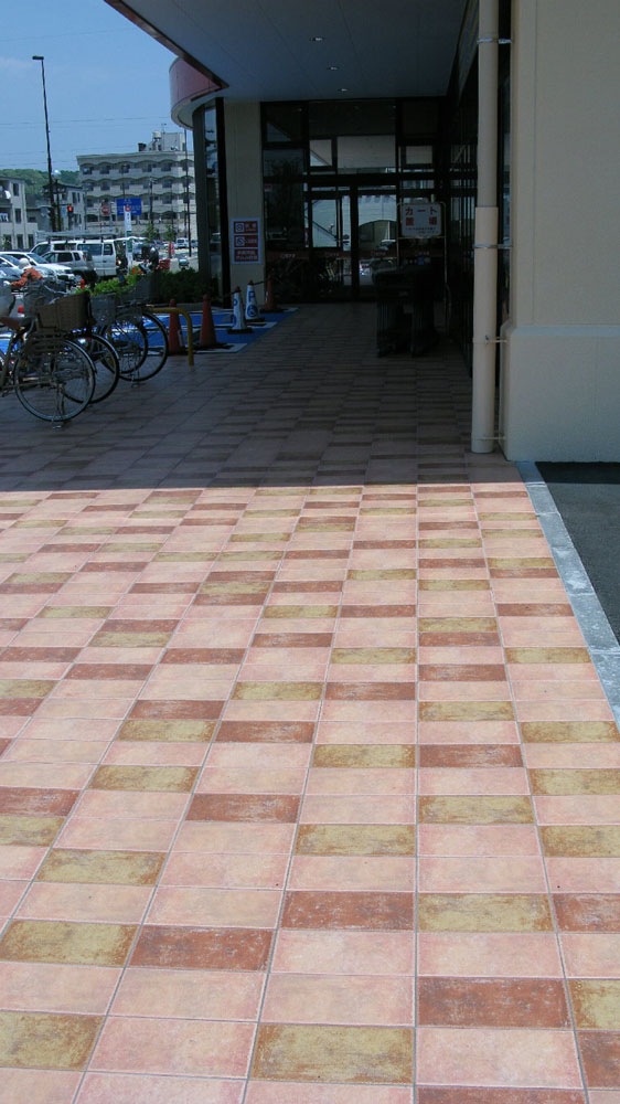 ●600×1200角、300×600角はタイルの性質上反りがあります。反りを目立たせないようにイモ張りまたはランダム張り(長辺の1/3以下のずらし張り)を推奨します。