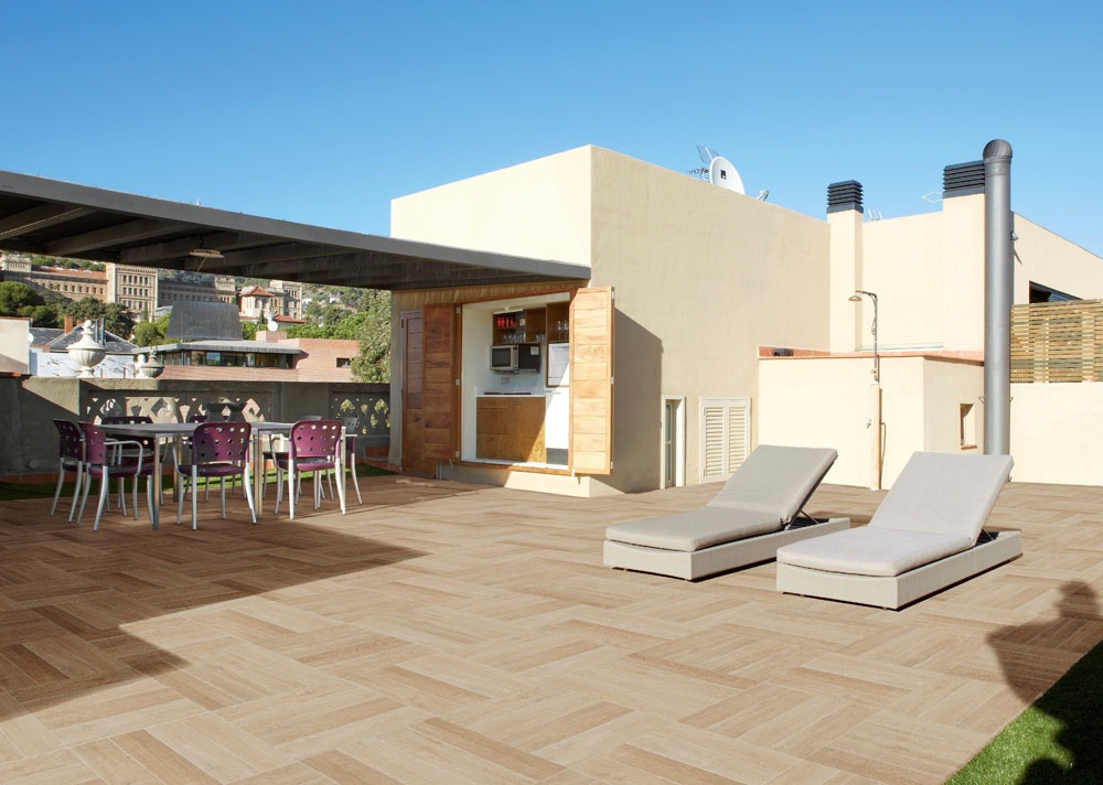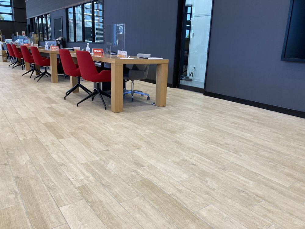 ●600×1200角、300×600角はタイルの性質上反りがあります。反りを目立たせないようにイモ張りまたはランダム張り(長辺の1/3以下のずらし張り)を推奨します。