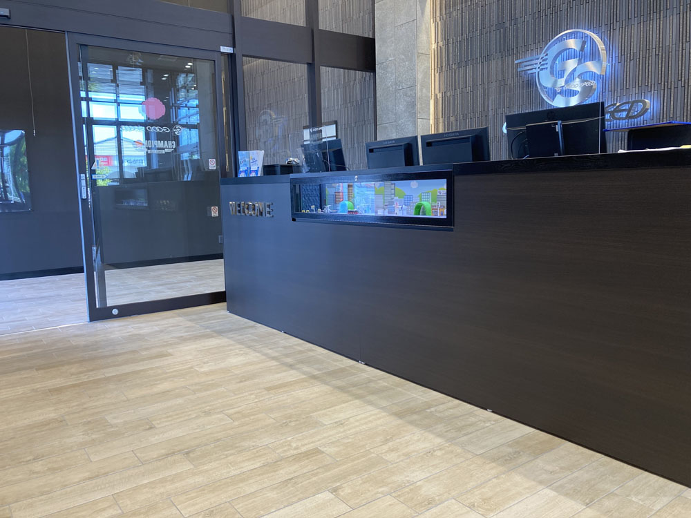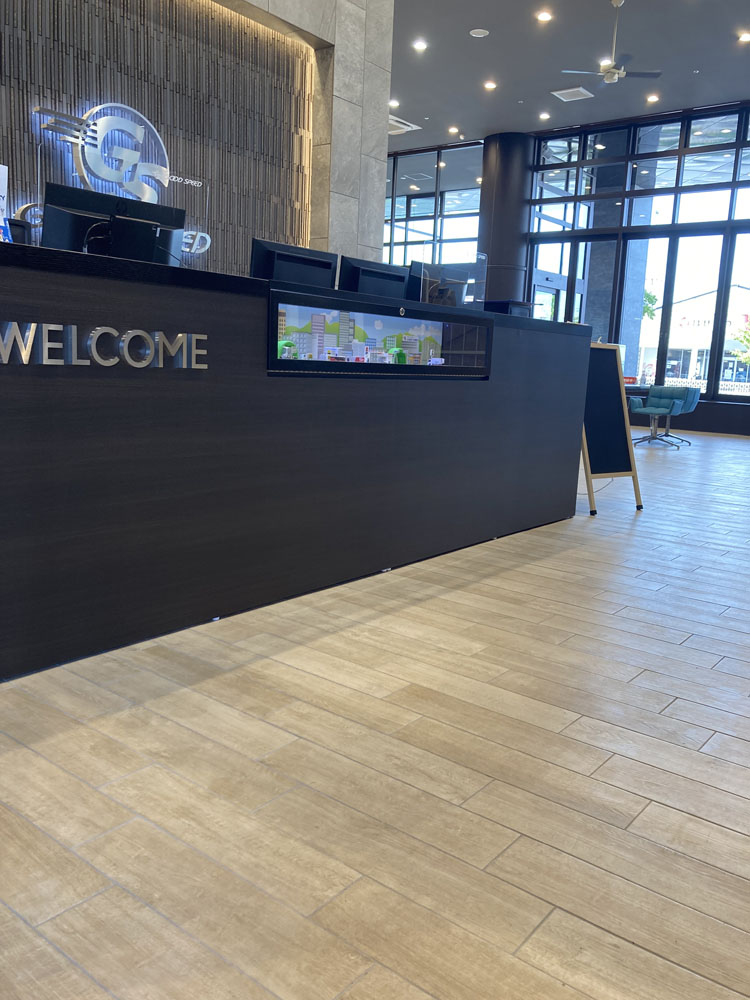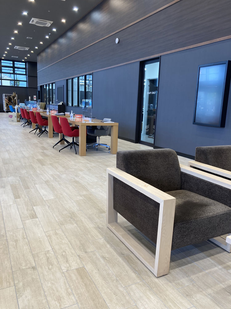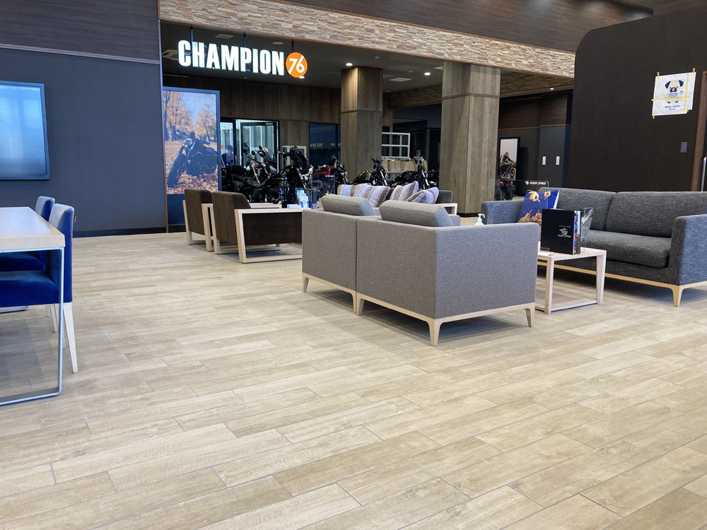 強い防滑性を持つグリップ仕上げほどのザラつきはありませんが、磨き仕上げや一般的なマット仕上げと比べると、適度な滑りにくさを兼ね備えた中間的な滑り抵抗が得られるのが特徴です。ただし、表面の粗さが肌に触れるため、裸足で歩く場所での使用は推奨されません。外部床使用可能です。